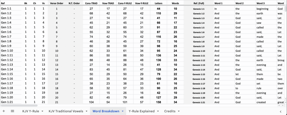- Sheet 3: KJV Word Breakdown By Verse