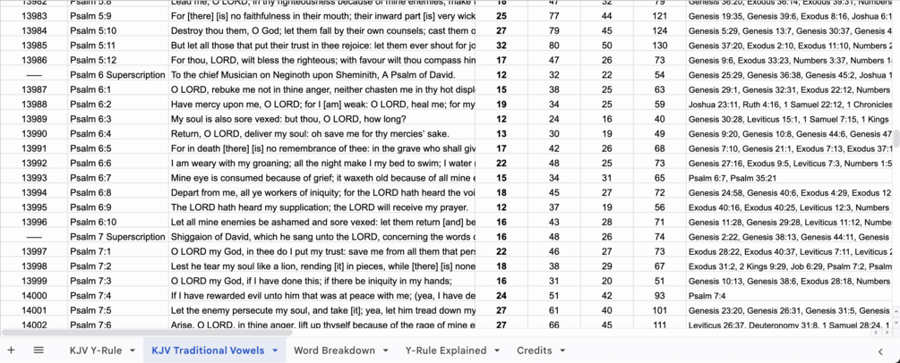 - Sheet 2: KJV Traditional Vowel (a,e,i,o,u) Verse Matches
